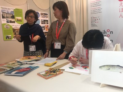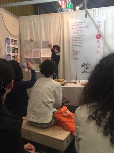 L’evento principale è stato nihon no ehon, la mostra bibliografica di JBBY con una selezione di 50 nuovi titoli pubblicati negli ultimi 5 anni. Gli albi sono divisi in tre categorie: Cominciamo da zero che comprende i libri per piccolissimi e i libri interattivi; Vedere, pensare e sentire, una sezione di libri che possono essere “letti” senza conoscere la lingua giapponese. In questa seconda sezione, troviamo bellissimi albi che seguendo la tradizione tipicamente giapponese di raccontare le storie con le figure (come negli emakimono del dodicesimo secolo) propongono una narrativa per immagini. Qui anche picture books che offrono suggestioni poetiche sul tempo, sulla natura e sulla vita attraverso le figure, e albi che raccontano la varietà delle emozioni dei bambini, perché essere bambini non significa sempre essere felici. La terza sezione, Benvenuti in Giappone, è un viaggio per conoscere questo paese attraverso libri tipicamente giapponesi o che affrontano questioni giapponesi come la bomba atomica o il recente Tsunami del 2011.