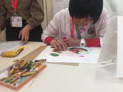 Hanno pubblicato i primi due libri, Small Bottle di Nanako Matusa e The ball and I, and clouds di Yasumi Kato, e si propongono di uscire con 4 titoli all’anno. Rie Kanemori ci ha spiegato che nella loro filosofia, i librai non solo vendono libri, ma possono usare le loro abilità per far conoscere, promuovere, trasmettere e poi vendere quello che amano. All’incontro era presente anche l’illustratrice Yasumi Kato che ha mostrato la sua tecnica: con matite, pastelli a olio, molti strati e un taglierino, realizza immagini di cibi con una straordinaria capacità di rendere materiche e realistiche le figure.