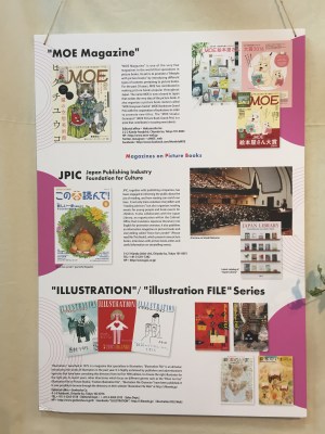 Completano la ricchezza della mostra, un corner dedicato ai libri che hanno ricevuto una menzione speciale al BolognaRagazzi Award negli ultimi anni e una serie di pannelli che raccontano l’importanza dei picture books in Giappone. Qui infatti non sono considerati solo per bambini, ma sono largamente apprezzati e ritenuti un fenomeno culturale. Ogni anno vengono pubblicati fra i 1000 e i 1500 nuovi titoli ed esistono più di 40 “musei dei picture books”. Questi musei hanno caratteristiche diverse, possono essere grandi spazi che offrono mostre permanenti e organizzano eventi, come quello dedicato alla grandissima Chihiro Iwasaki che ha aperto nel 1977 o quelli dedicati ad altri grandi artisti come Mitsumasa Anno, Kazuo Iwamura e Seizo Tashima. Oppure piccoli spazi derivanti da collezioni private. Non dimentichiamo poi l’Itabashi Museum di Tokyo che ogni anno ospita la Illustrator Exhibition della Fiera del Libro. Ci sono poi tantissime librerie specializzate che organizzano anche mostre e workshops.