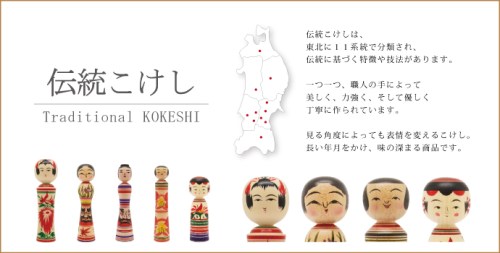 Un altro tipo di bambola tradizionale è la Kokeshi, conosciuta anche qui in Italia. Originarie del Tōhoku, diventarono talmente famose nel ‘900 da ispirare la prima matrioska. Si tratta di una bambola senza braccia o gambe, in legno, costituita da un cilindro per il corpo e una testa sferica. Ce ne sono due tipi, le tradizionali ( dentō-kokeshi – 伝統こけし)