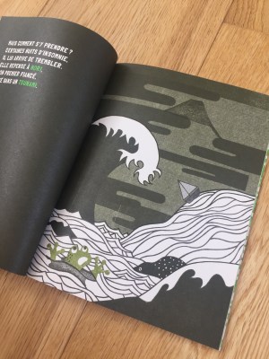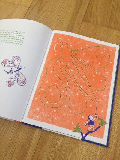 Non potevo quindi non rimanere colpita dal lavoro di Éva Offredo, che mescola la xilografia ad un segno preciso e che con pochissimi colori crea tavole di grande eleganza grafica. Diplomata nel 2002 in Arti Decorative a Parigi, ha debuttato con l’editore Gautier-Languereau, passando poi a Rouergue e collaborando con giornali e riviste. Vive a Limoges e insegna grafica.
