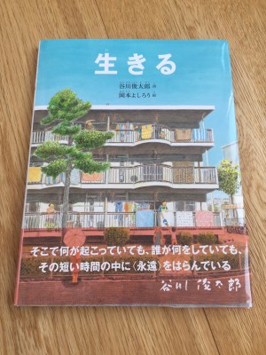 La poesia di Tanikawa che da il titolo all’albo di cui parliamo oggi è 生きる (Ikiru – Vivere). Ne potete leggere una versione in inglese di Naoko Smith qui. Io riporto una traduzione italiana, trovata qui. Nell’articolo si fa riferimento alla tragedia del terremoto e tsunami del 2011 e al fatto che proprio dopo quegli eventi, su molti blog giapponesi sia stato pubblicato questo omaggio alla vita, del grande poeta.