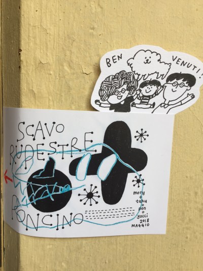 Yocci, Mory, Taku e Pon, come quattro archeologi dell’immaginazione, ci regalano un’esposizione che mescola la storia con la fantasia, il disegno con la scultura, e ci regala quel tipo di arte che diverte, incuriosisce, ci fa insomma pensare e non solo ammirare.