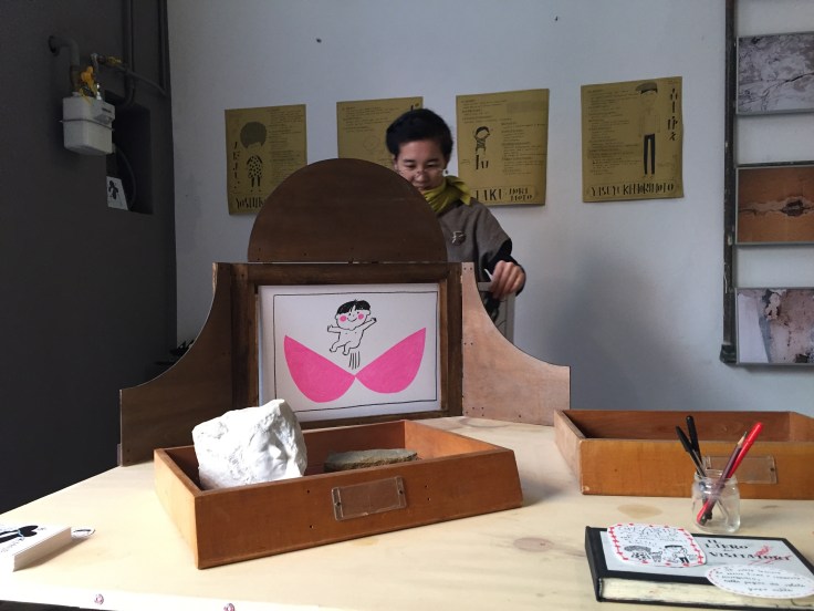 A me una sola volta però non è bastata, sono tornata in via Mascarella un pomeriggio di questa settimana e sono stata premiata con una lettura con Kamishibai della fiaba di Momotaro… ridisegnata da Yocci.