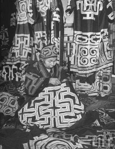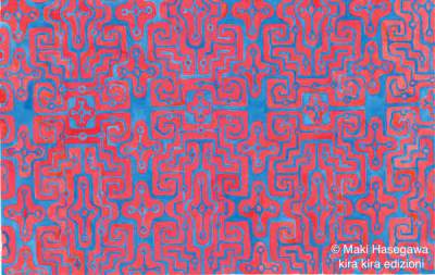 L’abito tradizionale Ainu è l'”attush”. Si tratta di una stoffa ottenuta dalle morbide strisce interne di corteccia d’olmo, imbevute d’acqua fino a che le fibre non si separano. Una volta realizzata, la veste veniva decorata con appliques e ricamo. Man mano che gli Ainu diventarono più dipendenti dai prodotti giapponesi, la veste fu sostituita dal più conveniente cotone. Gli abiti “Chikakarpe” avevano applicazioni e ricami ancora più elaborati, venivano realizzati in un colore unico (di solito blu) o con motivi visti nei kimono giapponesi. Maki Hasegawa ha riprodotto i bellissimi motivi delle stoffe ainu nell’acquerello che è stato nei risguardi dell’albo e nella quarta di copertina. Per ammirare queste meravigliose stoffe consigliamo Pinterest.